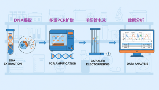 电泳分离:通过毛细管电泳技术分离不同长度的DNA片段,确定每个位点的等位基因